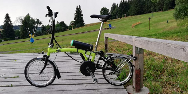 Elektrický brompton od Brompton je stále v nedohlednu a zprávy o kitu na konverzi Vašeho kola žádné. Takže jsme našli kit, který je k dispozici teď hned, na kolo pasuje jak ulitý, nevyzaduje žádné změny a kopce na něm vyběhnete jak nic. Pendix elektrifikuje cargo kola německé pošty, takže Vás uveze jak pírko. Fotka je z vrcholku stoupání na most u Holešovického nádraží. Pohoda jazz