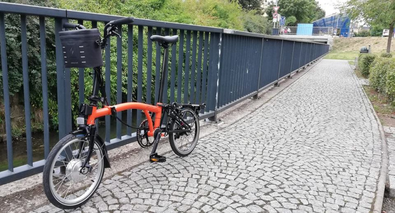 Skládací kolo Brompton M6R elektrifikované sadou Swytch Brompton Conversion Kit se pomalu stává naším skvělým společníkem nejenom ve městě, ale i v jeho okolí. S baterií o kapacitě 180 Wh totiž poskytuje akční rádius okolo 25 kilometrů.