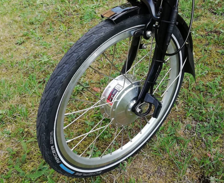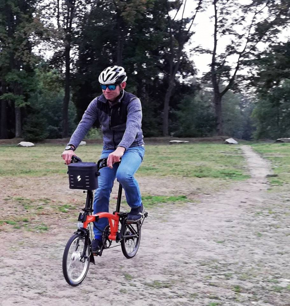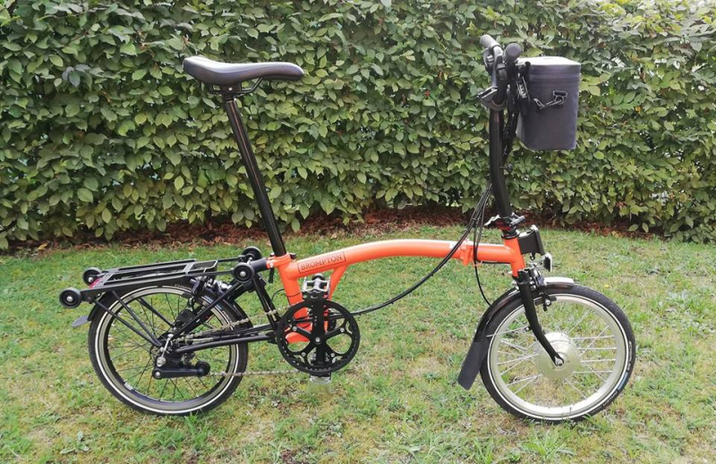 Když na svém Bromptonu vyměníte přední kolo za kolo s malým motorem, na řídítka připevníte malou nacvakávací brašnu s baterií a integrovanou ovládací jednotkou, k levé klice upevníte frekvenční čidlo a nakonec vše mezi sebou pomocí konektorů propojíte, pak vám každý kopec bude připadat jako rovina. A navíc celková váha vašeho "eBromptona" vzroste maximálně o 3.5 kg. Když však "odložíte" brašnu, snížíte váhu o 2 kg. A jako bonus je fakt, že svého Bromptona složíte do kompaktního balíčku bez jakéhokoliv omezení.