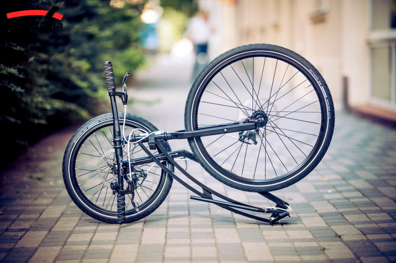 Skládací Mibo Gt Split Plus. Skládačka na kotoučích. Takhle vypadá složená napoprvé, ale lze ještě zmenšit jak vidno napodruhé