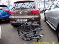 Byl to VW Tiguan ročník 2012. Kolo Tern Eclipse S18 pasuje do kufru dobře jen je trochu vysoké a při standardním složení (tj. když při skládaní začnu zasunutím sedlovky nadoraz až klepne spodkem o zem) vyjde o kousek vyšší než prostor kufru. Pomoc je snadná, povolím rychloupínák a sedlovku trochu vysunu. Kolo se tím nakloní a už se do kufru vejde a za ním i nějaké tašky a batohy. Bohužel na položení naplocho je kufr příliš krátký a tak kolo musí stát. O nějakém ukrytí pod dekl si taky mohu jen nechat zdát. I když je tam k dispozici dalších asi 25cm pode dnem kufru, musel bych ovšem jezdit bez rezervy a přesto by to na zasunutí pod dekl kufru nestačilo.
