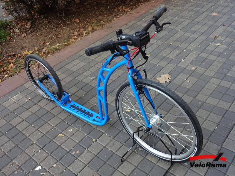 Poměrně dlouho jsem váhal s elektrikou a nevěděl si rady. Elektrifikované stroje s motory Bafang nebo Magic Pie vypadaly impozantně, frčely s mými 120 kg až třicítkou, ale vážily cent a odrážení na nich nedávalo smysl. Přestavba byla více méně nevratná a znamenala přetvoření koloběžky v elektrický skůtr, na kterém se ani nehnete, protože prostě to pofrčí příliš rychle.