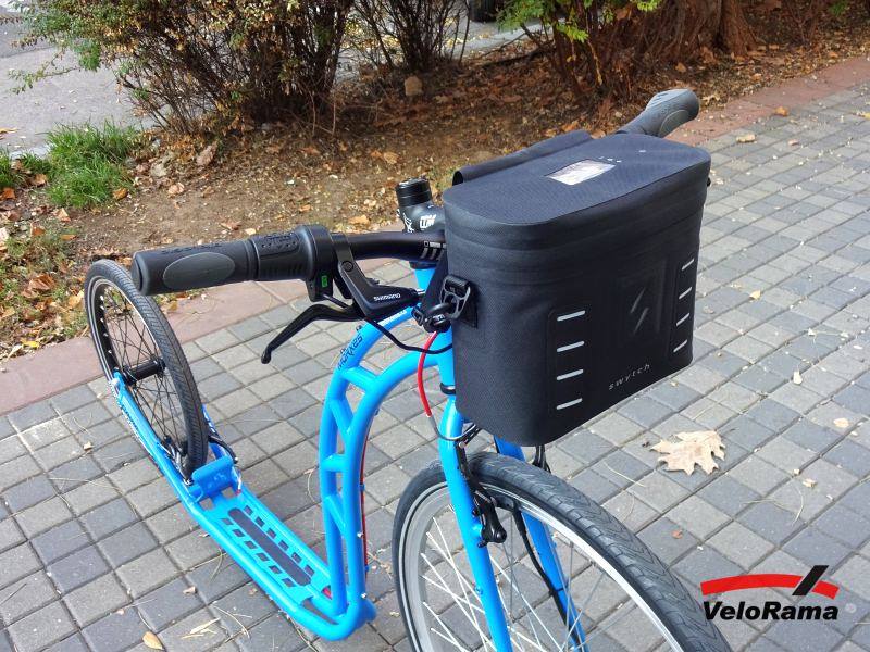 Ale koloběžka je pro většinu uživatelů sport a ne jen transport - chtějí se hýbat. Elektrifikace tomu obvykle brání svojí hmotností a odporem při jízdě bez motoru. Až jsme potkali sadu SWYTCH pro skládačky Brompton. Má volnoběžku, snadno instalovatelnou baterii v brašně na řídítka a poměrně lehkou (ano rovná se trochu slabou) baterii. SWYTCH se ovšem dělá i pro standardní kola se širokým nábojem (100 mm), a tak jsme si velkou verzi zkušebně namontovali do Morxes Cavia. Výsledek je SUPER. Elektrika je v případě potřeby během pěti minut pryč. Odpor při jízdě bez dopomocije skoro neznatelný a cesta na ní bez elektriky mi nevadí. Mohu tedy jet sportovně po rovině a elektriku si pošetřit na kopec, který normálně tlačím celý. Prostě je to dobré řešení pro elektrifikaci sportovní koloběžky. Řešení, které koloběžku nezabije a ponechá jí její sportovní duši.