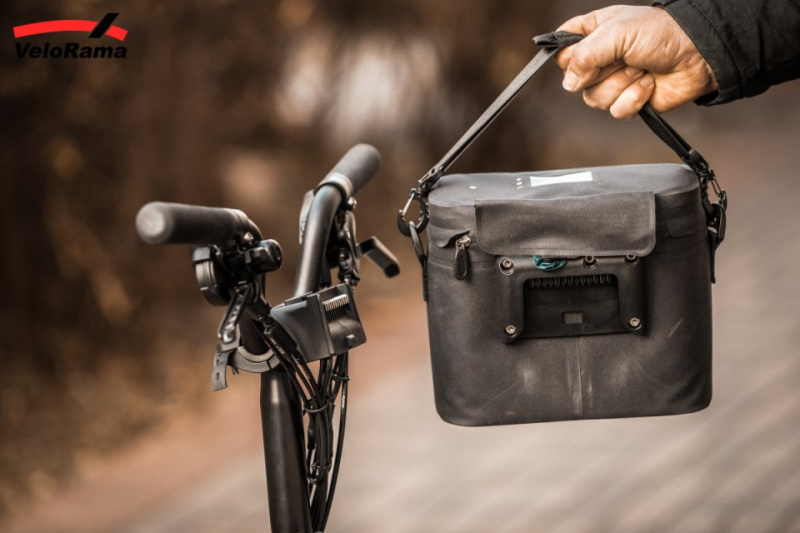 Náš testovací M6R váží kompletní se slabší baterií 16,9 kg a bez baterie 14,2 kg. Kolo se složené vždy nosí bez baterie, tu je třeba pro kompletní složení sundat. Baterie respektive brašna s elektronikou a baterií má popruh a je to praktická brašna přes rameno. Nejde do ní vůbec nic dalšího přidat, na to není konstruovaná, ale nosí se dobře. Jistou nevýhodou Swytch sady je kompatibilita s brompton brašnami. C bag a T bag a vlastně i Folding basket se na rámech M a S potkávají s brašnou Swytch sady a navzájem by se prodřely. Na M rámech je možné pod Swytch brašnou mít nižší brašny jako je mini O bag, Shoulder bag a Rolltop bag. Na H rámech lze vozit i velké brašny.
