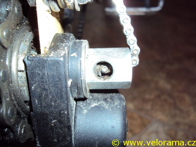 POZOR Řadící tyčinka je do náby zašroubována a jestliže jste např. při výměně duše celou řadící tyčinku vytočili ven z náby, tak ji při vracení nesmíte utáhnout na doraz. Správně ji jemně úplně zašroubujete a pak jí o 1,5 otočky zpět povolte, aby si řetízek při řazení mohl najít volně správnou polohu sám. Při úplném dotažení se bude páčit, řazení půjde ztuha a dojde časem k jeho přetržení.