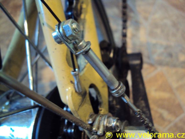 - Lícování dosáhnete šroubováním tyčky na druhém konci řetízku, viz poslední obrázek. Povolíte kontramatku, zašroubováním nebo naopak vyšroubováním tyčky do trubičky seřídíte řazení a zase pevně utáhnete kontramatku.
