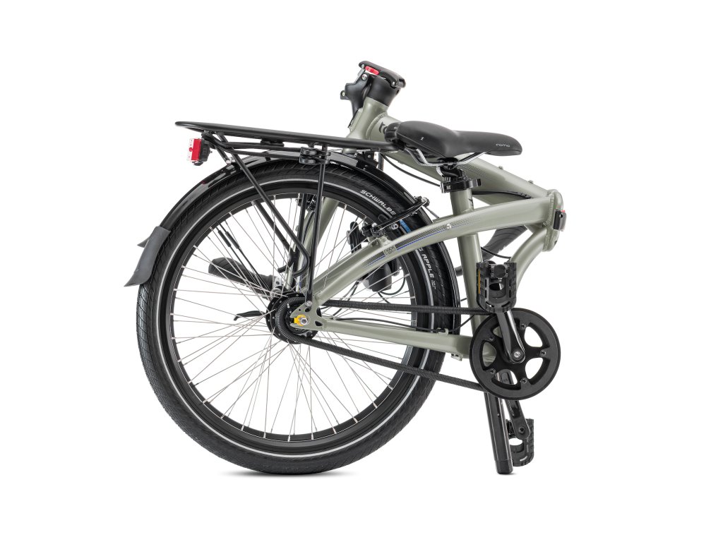 Velká skládačka Pohodlné a velké skládací kolo s 24" koly, vnitřní převodovkou v náboji zadního kola a dynamem v předním kole Řada skládacích kol Tern Node je postavena na větších, 24" kolech a má tedy vlastnosti, které se blíží běžnému jízdnímu kolu. Je to ideální kolo nejen pro velké a vysoké cyklisty, ale ocení ho všichni, kdo mají rádi komfort a rychlost velkých kol, a přitom u nich doslova pár centimetrů po složení nehraje roli. Naprosto úžasný je na dovolené, kdy do kufru auta pohodlně složíte několik těchto kol a v cílové destinaci máte k dispozici pohodlné a téměř plnohodnotné jízdní kolo, které vám mnozí budou závidět. Oproti modelu C8 má "déčko" nastavitelný představec Andros, lepší hlavní rámový skládací mechanismus a lepší komponenty z nichž vyjmenujme třeba komfortní balónové pláště Schwalbe Big Apple s ochranou proti defektu. Oproti modelu Node D8 má "dé sedmička" navíc ještě takřka bezúdržbové 7mi rychlostní řazení v náboji Shimano Nexus 7 a převod řetězem je pod krytem BioLogicFree Drive™ který vás chrání před nečistotami a olejem z řetězu. Součástí kola je dynamo, které napájí přední a zadní světlo, dále také pumpička Biologic PostPump 2.0 ukrytá v sedlové trubce, sada blatníků a zadní nosič.Doplňkové parametry